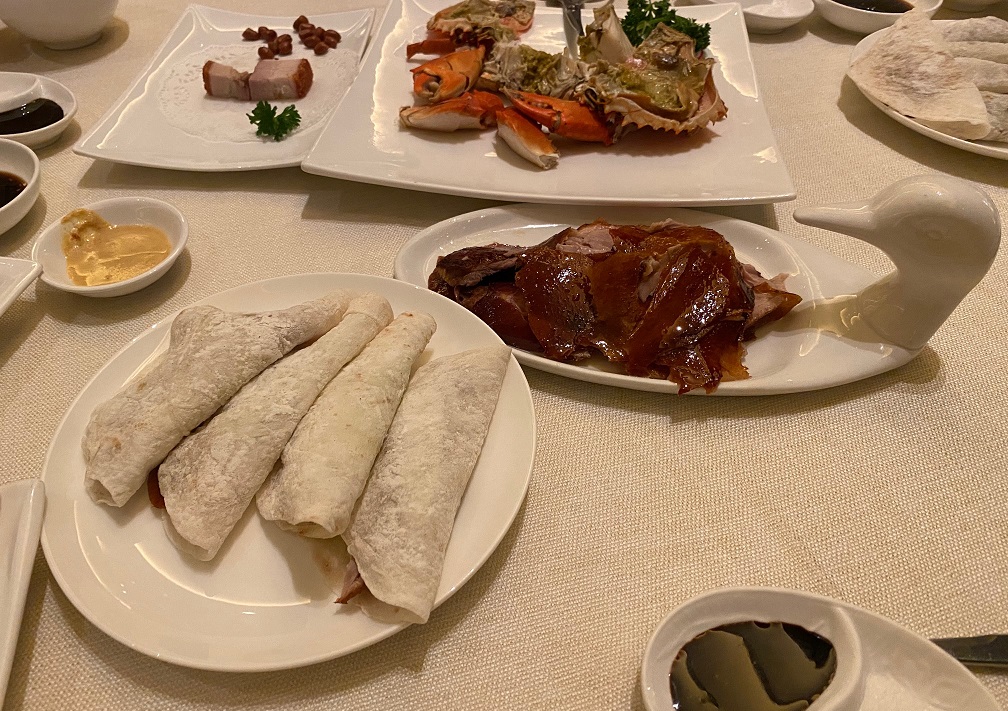 上周末在山东菜馆吃烤鸭,他说这是他在新加坡吃到的最好的烤鸭,过了两天自己又叫了一次外卖。