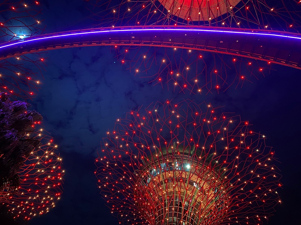天黑后到滨海湾花园看灯光表演,旺季已过,没有什么人。