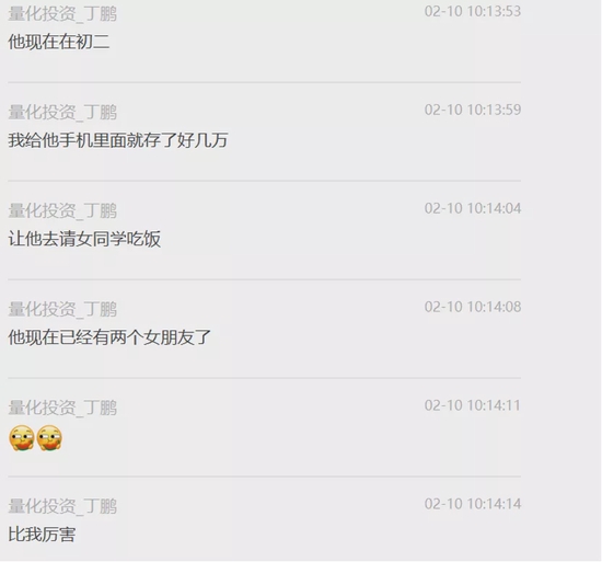 然而在A股下跌之际,量化投资圈却惊曝大瓜。有爆料者向凤凰网《风暴眼》提供了一份中国量化投资学会理事长丁鹏在群聊中发表的一番对于孩子教育的看法,其中屡有惊人之语曝出。