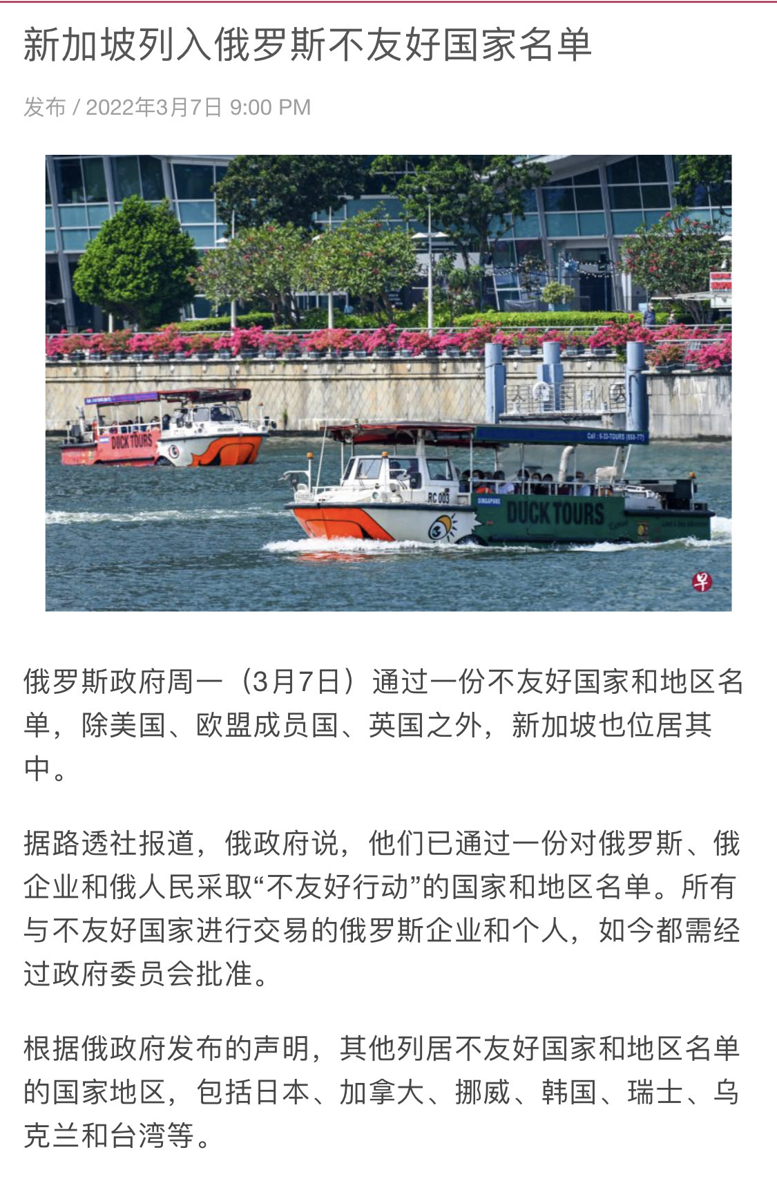 新加坡列入俄罗斯不友好国家名单