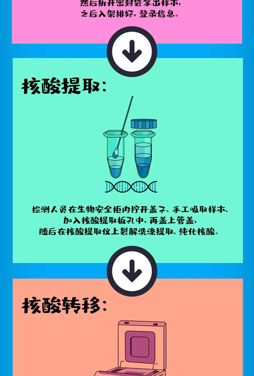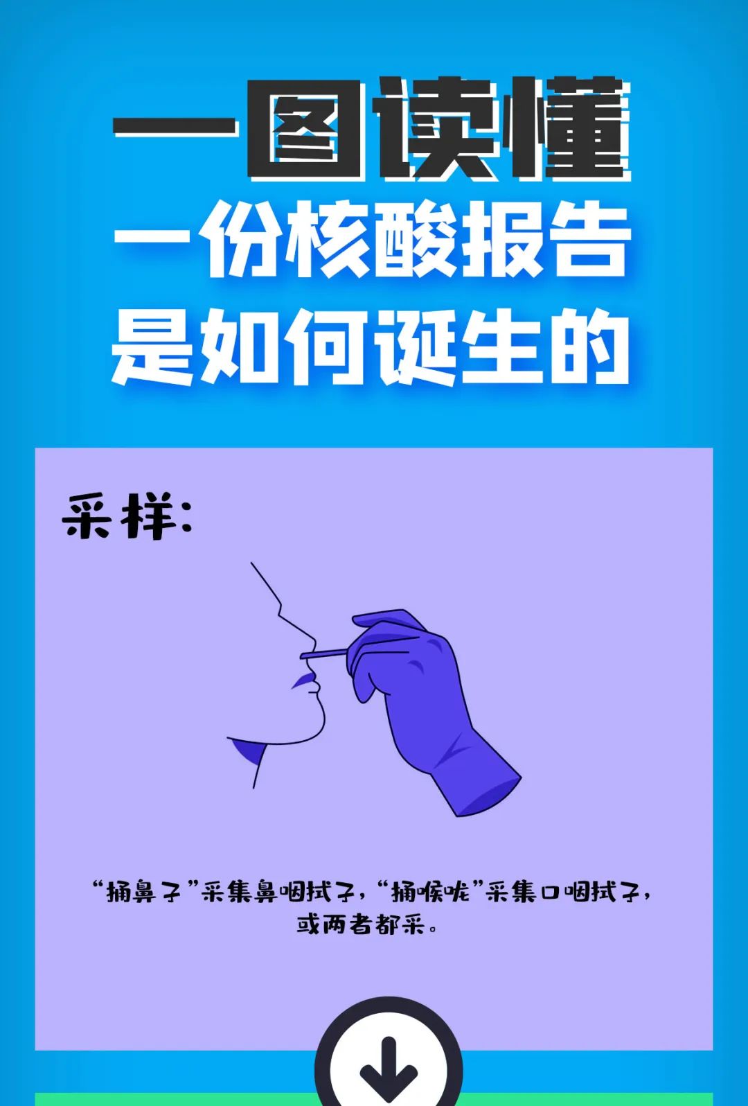 很多人以为,核酸采样后,直接用机器检测很快就能出结果了。其实,从采样护士在鼻部或咽部“轻捻慢拢”后,后续还包括了样本签收、核酸提取、核酸转移、核酸扩增、结果审核等步骤。