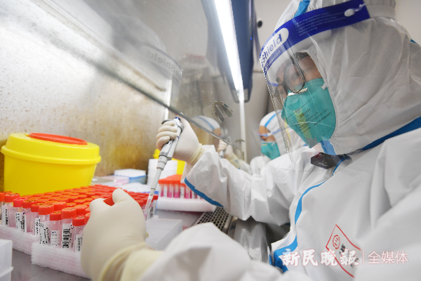 进入PCR实验室必须“全副武装”。新民晚报记者 徐程 摄(下同)