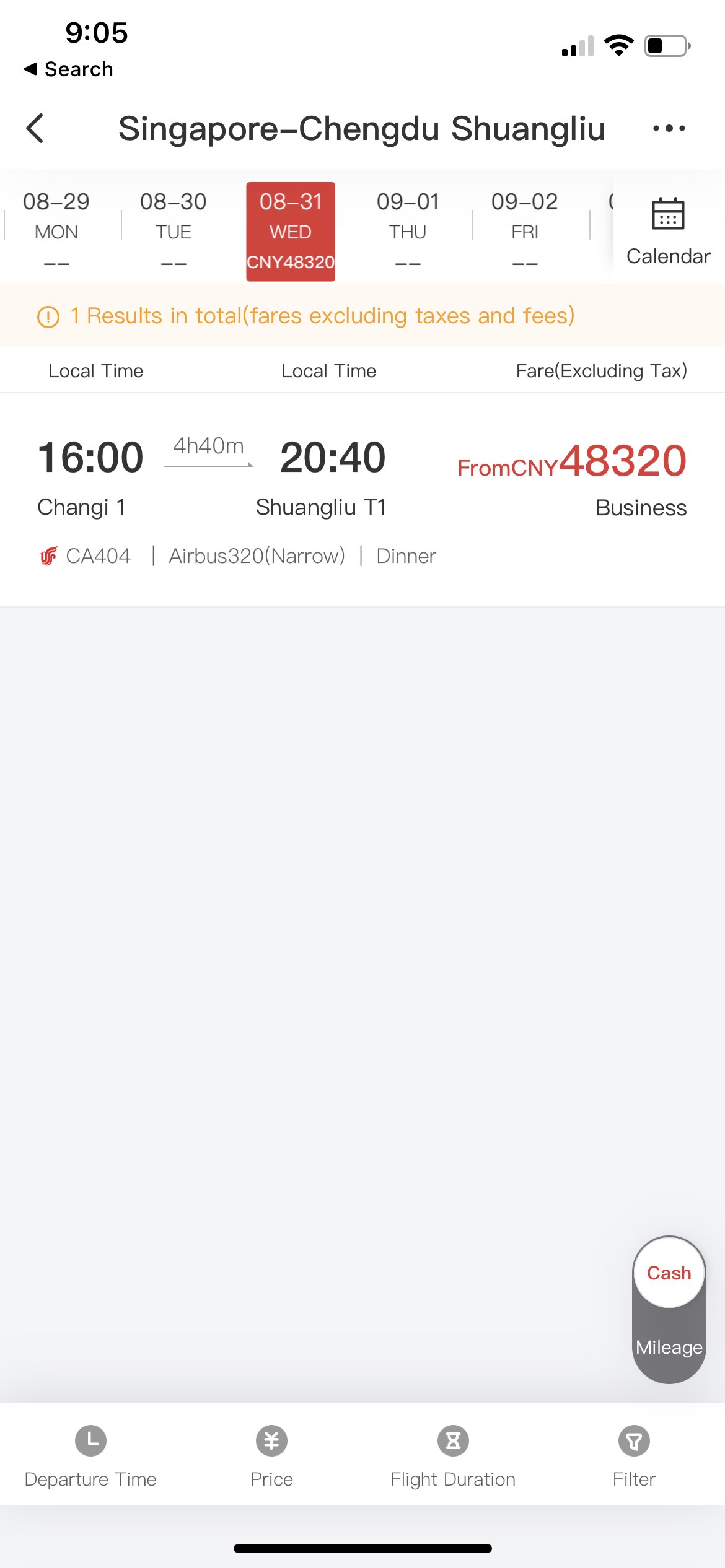 前两天看还有8月的,刚刷了下现在国航能买到的便宜点到要到9月了… 估计过两天9月的也没票了