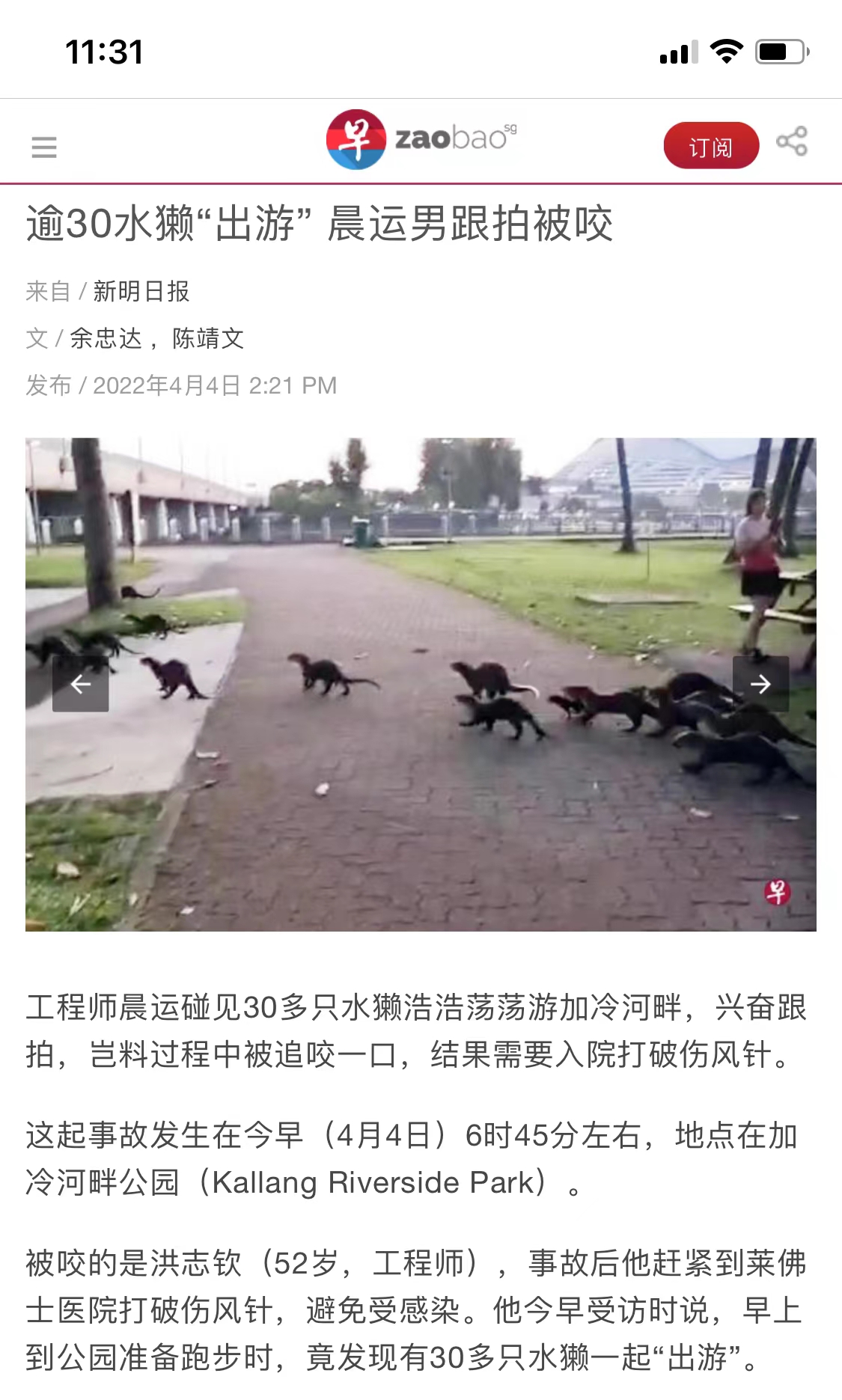PS: 小坡的水质环境是越来越好了,刚才查了一下 全岛已经有快90只水獭了