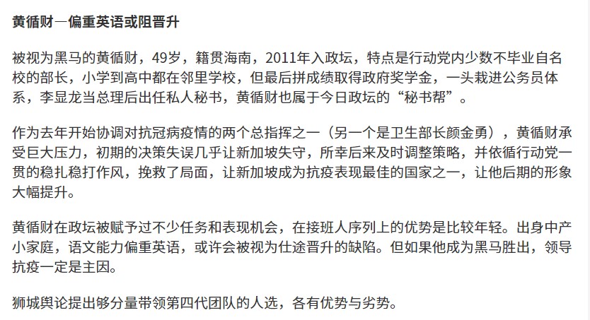 临场发挥上台讲话算是过关了,在国内的曝光度是足够只是国际上就不知道了,能不能驾驭新加坡这艘小船在巨轮之间穿梭就要拭目以待了。