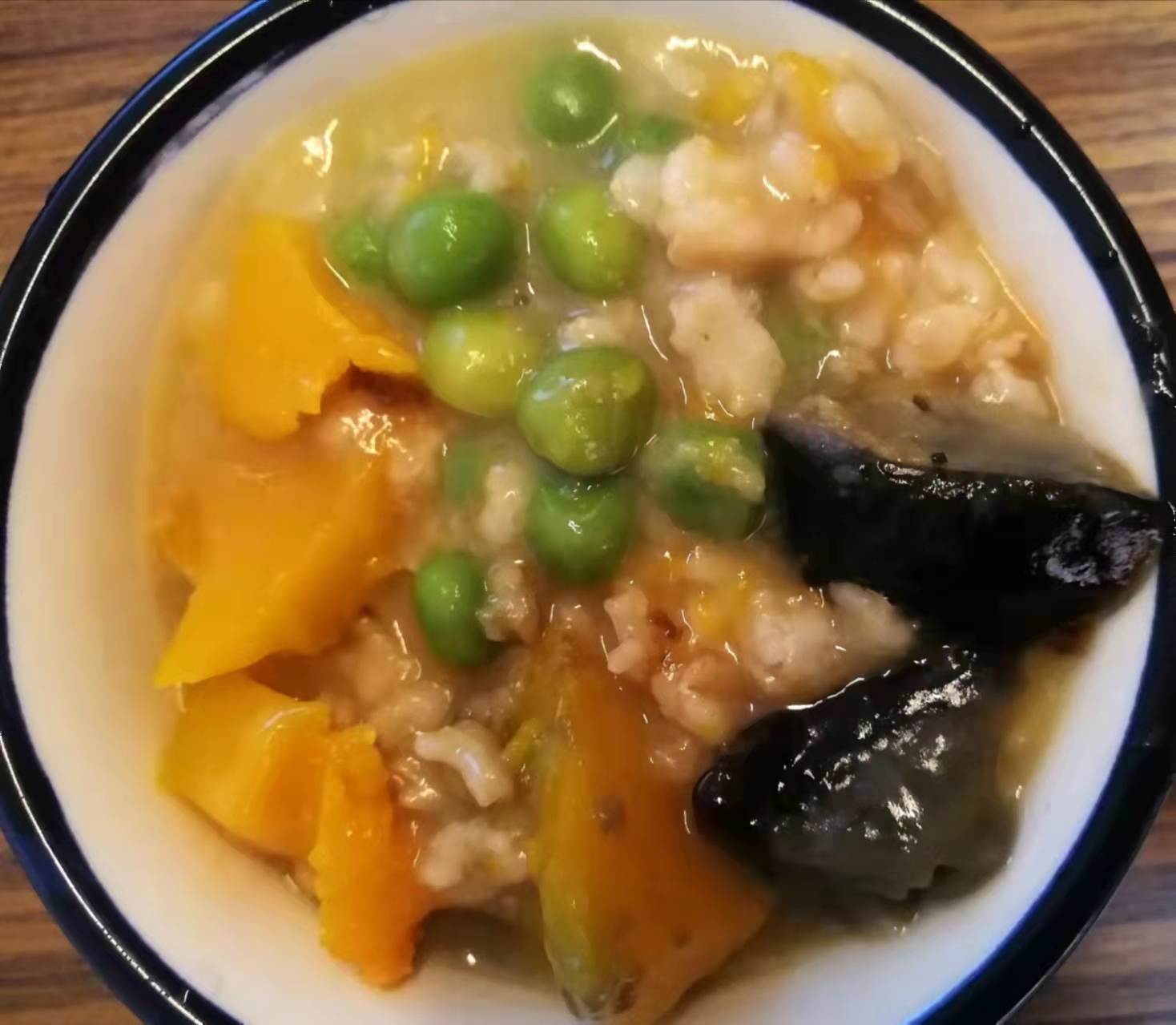 皮蛋青豆火鸡丝麦片粥