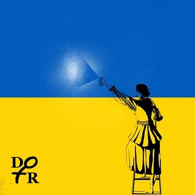 图案描绘了一名身穿长裙的乌克兰女孩站在阶梯上喷绘乌克兰国旗。 主页介绍图案的文字中写道:“这是一个年轻乌克兰女孩在有恃无恐描绘全新的未来,因为自信是对压迫最有力的反击。”