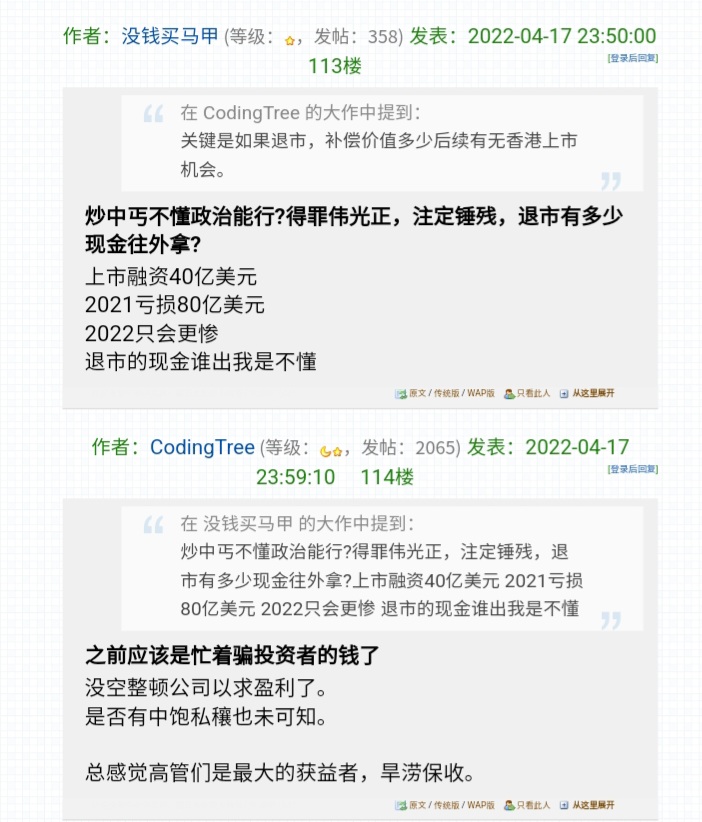 楼主在114楼中,是说谁在骗投资者的钱呢?有无证据呐?