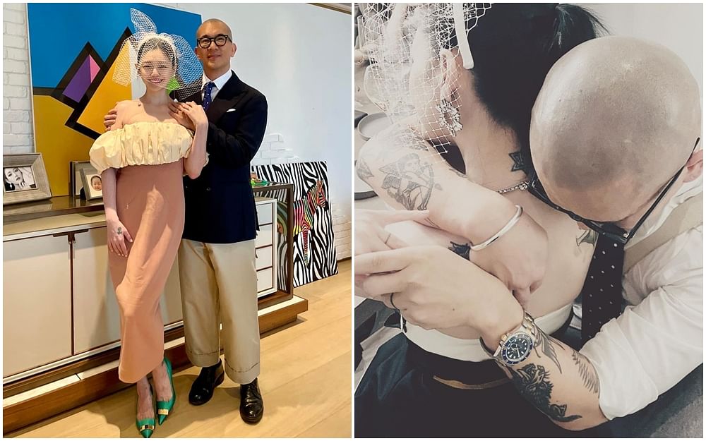 除了具俊晔在节目上放闪,小S的化妆师也在IG上曝光了大S和具俊晔的家宴照。大S与具俊晔在家中招待好友,与他们分享新婚的喜悦,黑人陈建州和范玮琪都是座上嘉宾。照片中,具俊晔靠在大S的肩膀上紧紧抱住她,另一只手则牵着彼此的手露出无名指上的戒指刺青,非常甜蜜。https://ibit.ly/Dy2_