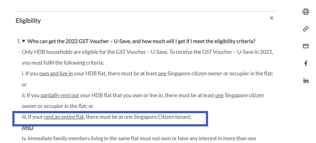 c) If the entire flat is sublet to you, there must be at least one Singaporean tenant;