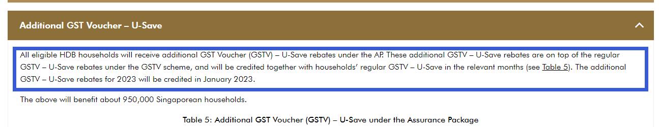 Please refer to the GST Voucher website for more details on U-Save: https://www.gstvoucher.gov.sg/Pages/U-Save.aspx. -