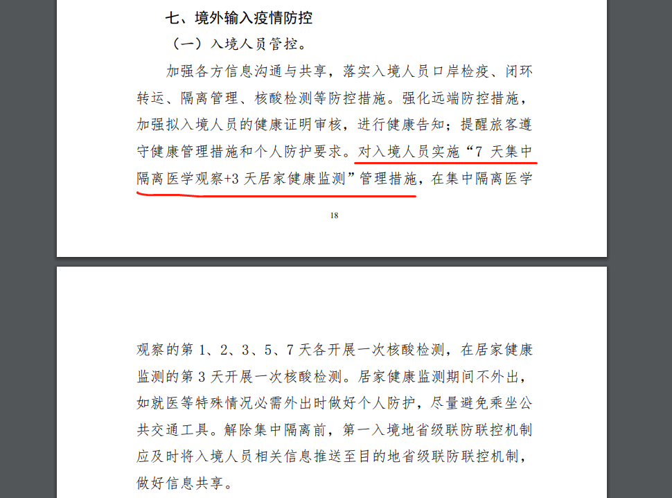 【图】对入境人员实施“7 天集中 隔离医学观察+3 天居家健康监测”管理措施
