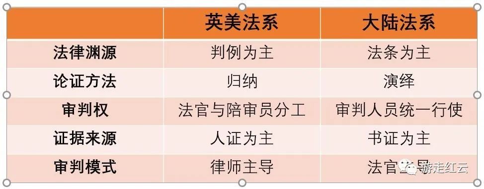 我们可以大概用一张表格来归纳一下两大法系,英美法系 以及 大陆法系 的几个主要区别: