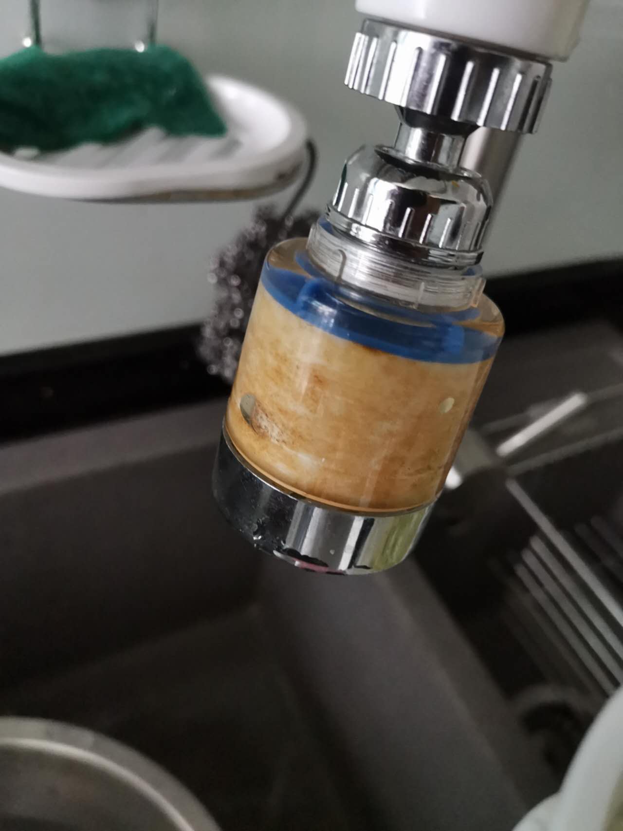 水龙头起泡器拿下了,里面也是很多脏东西。喝矿泉水比较好。