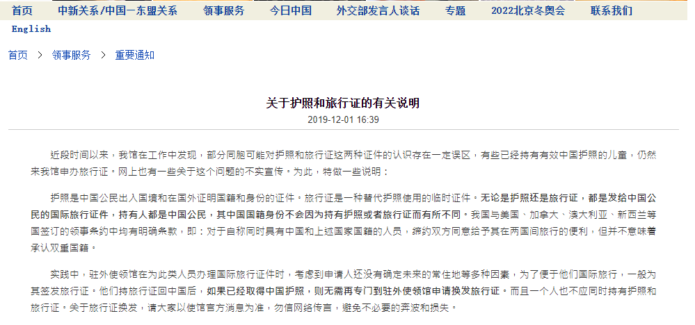 我问过大使馆只能用一本护照,哪怕21岁转回中国国籍。