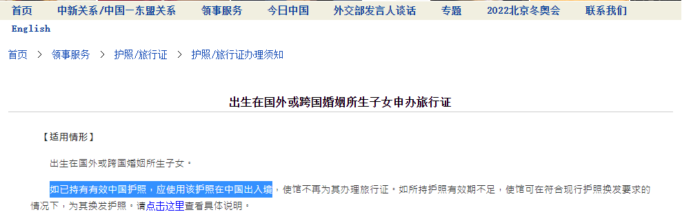 如已持有有效期中国护照,应该使用该护照在中国出入境,大使馆不再为其办理旅行证...