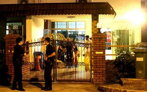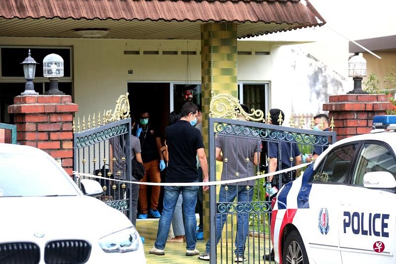 7月6日下午1时50分左右在立可力生路发生命案后,警方在现场搜证约六小时,带走至少四大袋的证物。(庄耿闻摄)