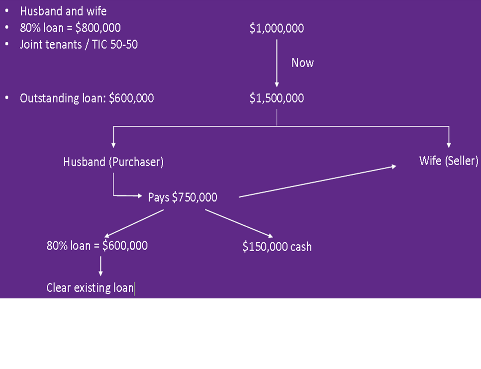 没错,婚姻的稳定性是它的风险。 如果之前是老婆卖给老公50%的份额,在DECOUPLING的过程中, 老公还需要给还清全部剩余的贷款(BSD, ABSD,SSD),整间屋子归在老婆名下。
