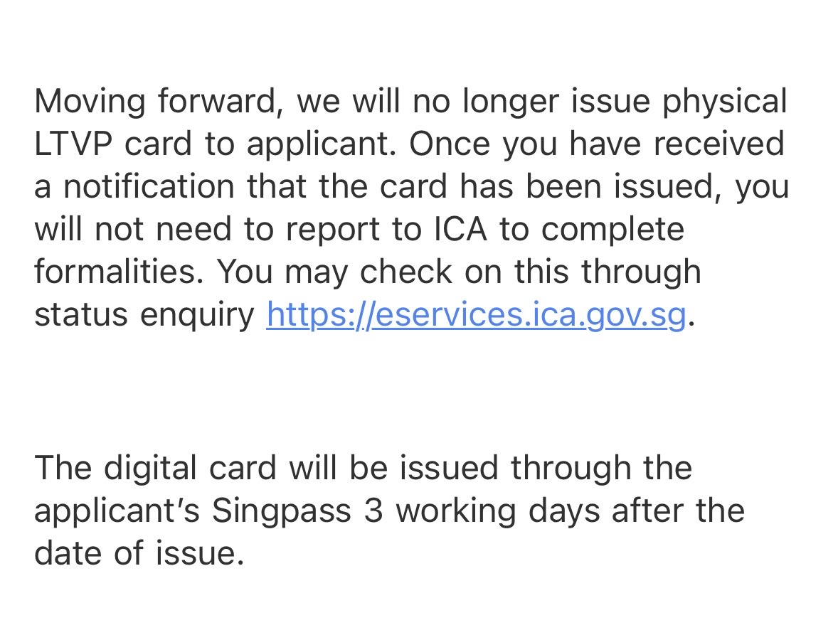 ica 没说去领卡,只说singpass可以看到了,no further action required