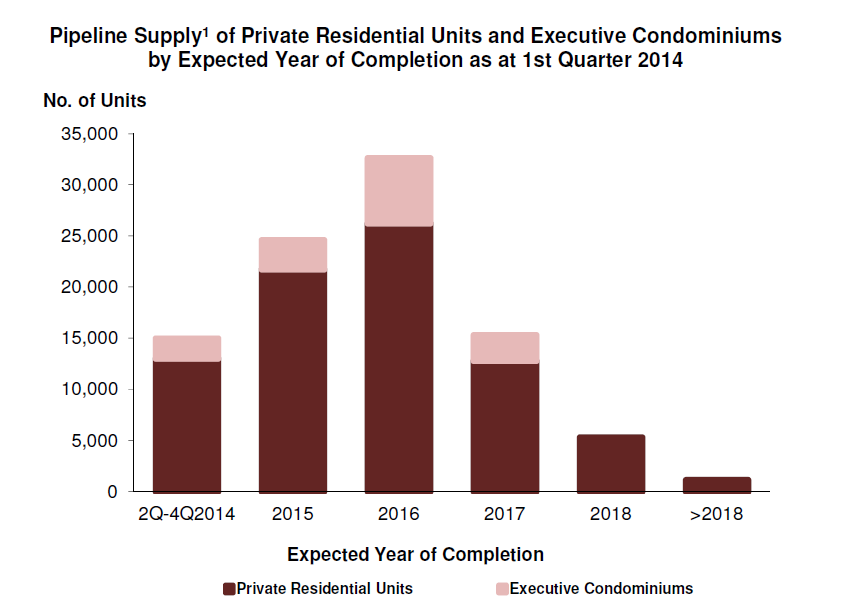 2014年估计有15万间EC和私人房产TOP,2015年有24万,2016年有32万。想像一下,这么大数量的新竣工的房产涌入,对租赁市场的冲击会有多大。旧公寓业主将面对租金回报率下滑。但由于二手公寓市场上现在业主很多是在几年前以低成本够入,最近几年的低利率足够用租金偿还。除非某些投机者拥有多套房产,面对房供的压力,才会出现降价行为,不然二手房很有可能不会出现大幅降价。