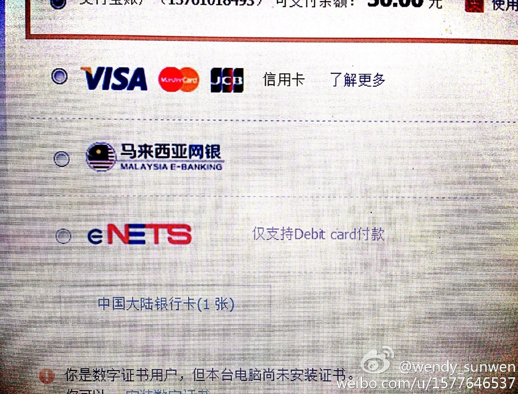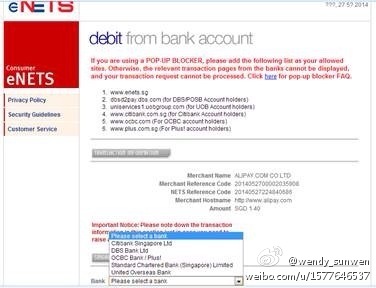 新加坡本地最大的网上支付工具(eNETS)5.27日终于落户支付宝国际收银台??