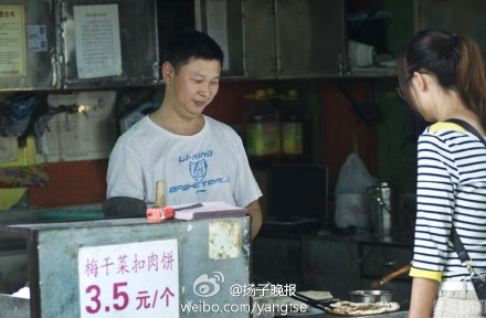 湖南一肉饼店老板因相貌引排队买饼,你懂的。