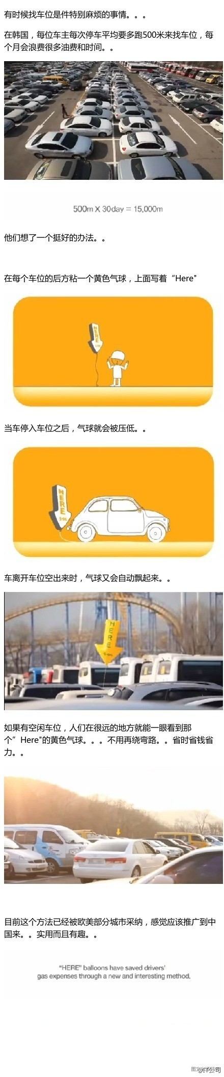 韩国终于有原创了。想出的快速找车位的方法,据说现在已经被部分国家采纳