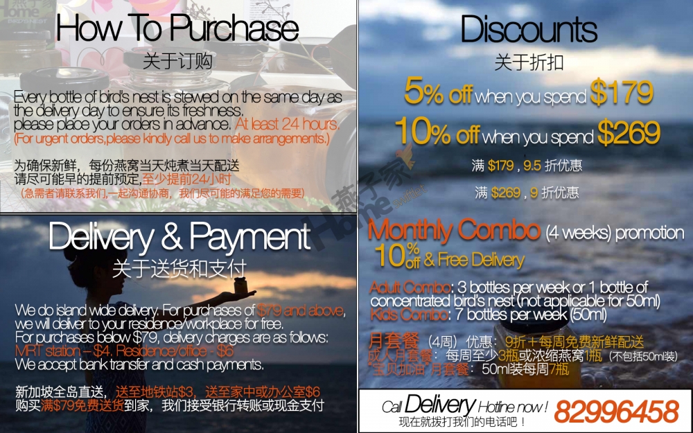 成人月套餐:每周至少3瓶或浓缩燕窝1瓶(不包括50ml装)