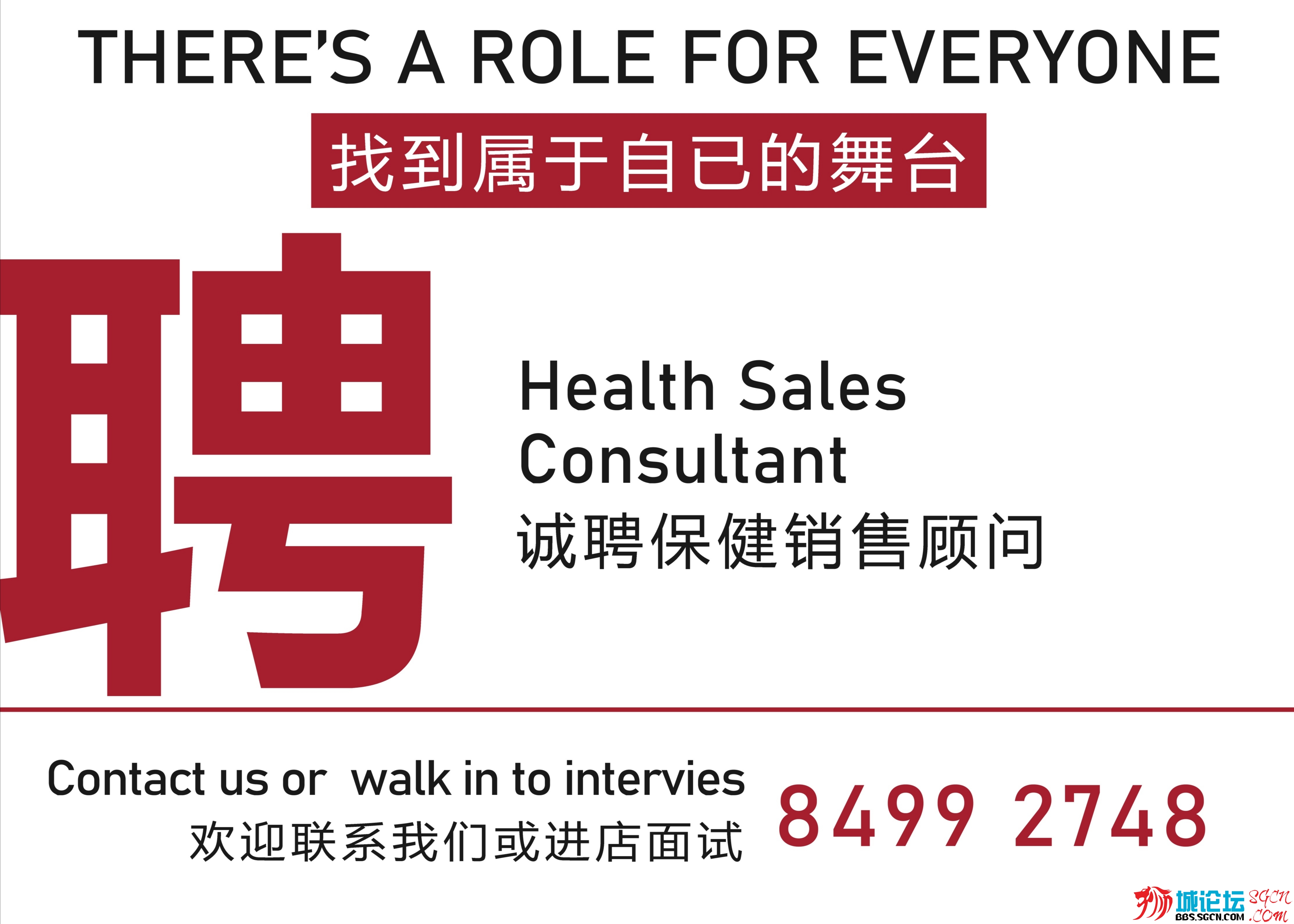 诚聘保健产品销售顾问,薪金优厚, 欢迎公民.PR,家属准证