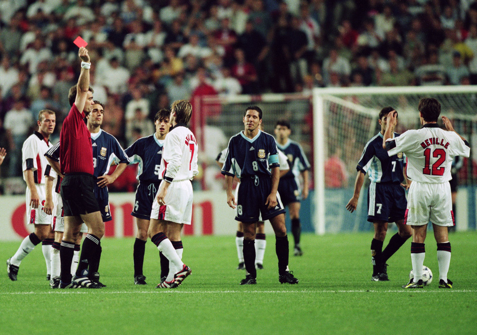1998是英吹元年。“英格兰太牛逼”这个印象,正是从这一届法国世界杯开始深入人心的。英超联赛经过长达一年的沉淀,很容易就把人们导向“英超水平=国家队水平”的错误观念。彼时利物浦出品的追风少年刚刚崛起,西蒙尼就用一记假摔勾起了英格兰对阿根廷仇恨的记忆。