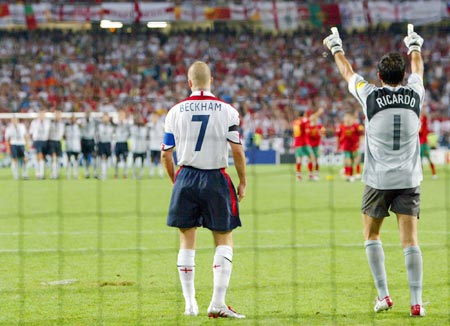 四分之一决赛,踢飞了点球的贝克汉姆是葡萄牙的救世主,空手套白狼扑到一个点球的里卡多也是。里卡多,记住这个名字吧,不久以后,他刮起的酷炫风暴将让整个大英都颤抖起来。