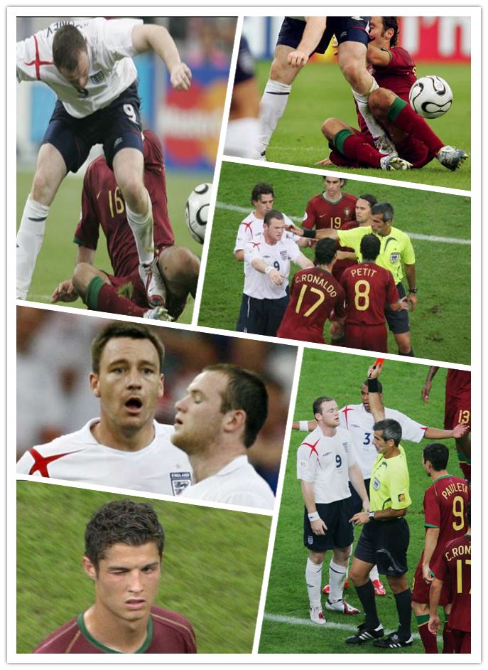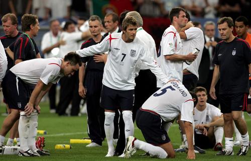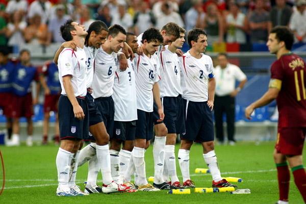 06年输的有很多借口,鲁尼退场,10打11,点球出局,于是很多人都开始被迫为这一国难买单:从莫名其妙要为鲁尼红牌负全责的C罗;到不得不辞队长以谢天下的大卫;再到一面深受国脚爱戴一面深受球迷谩骂的埃里克森;甚至连随军出征的太太团包括报道太太团丑闻的太阳报镜报在内,无不一 一成为狂妄自负又恼羞成怒的英吹们痛骂和发泄的对象。
