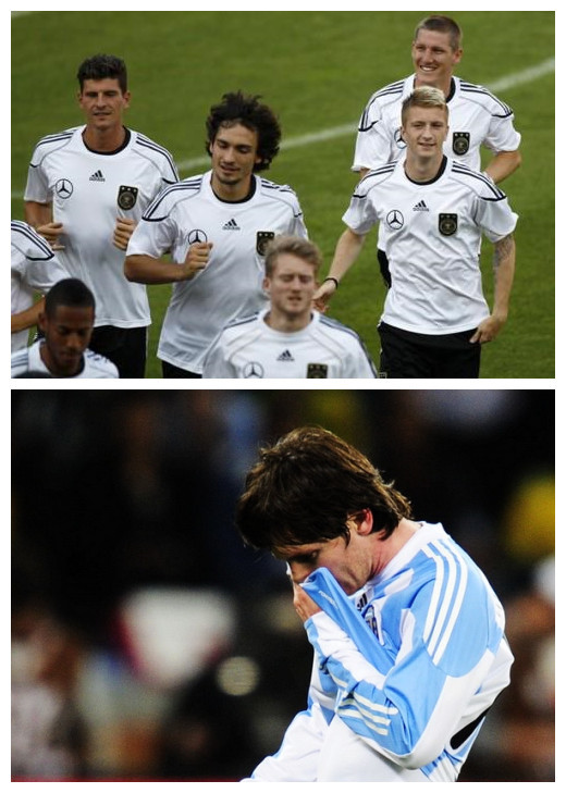 倒数第一的加纳本是天上掉给倒数第一的英格兰晋级8强的大馅饼,英格兰当然是众望所归地没有把握住,硬是让给了头名美国。当然,美国大屌丝,送给他也白搭,一样十六强滚回家。和拜仁八强根本无所谓抽到皇马还是曼联一样,要与C组第二名对战的A组头名德国,人家是根本无所谓在十六强打美国还是打英格兰啦,反正都是送上门给他虐的菜——他倒是比较关心下一场自己对战阿根廷万一梅西这小妮子突然会进球了咋办。