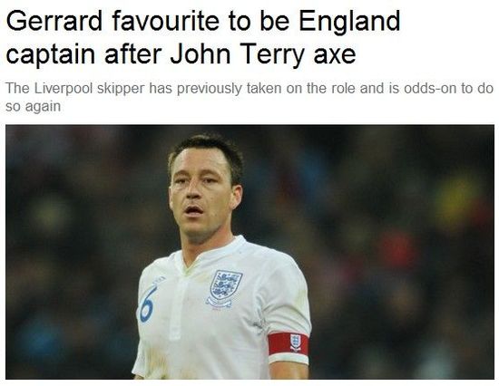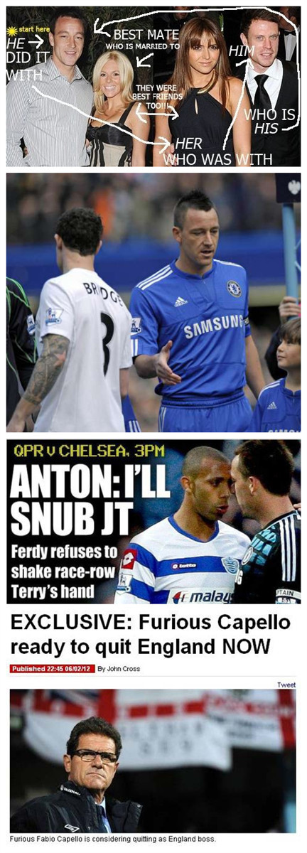 2010年太阳报终于完成了黑英生涯的最高成就,靠着一出友妻门的疯狂报道,成功地把国家队队长给黑下马来。正因为友妻门影响恶劣,英足总对一年以后特里的种族歧视事件加以重罚,把卡佩罗亲自出面为其保住的队长袖标再次没收——这样的举动激怒了卡佩罗,意大利人直接怒炒英足总的鱿鱼。