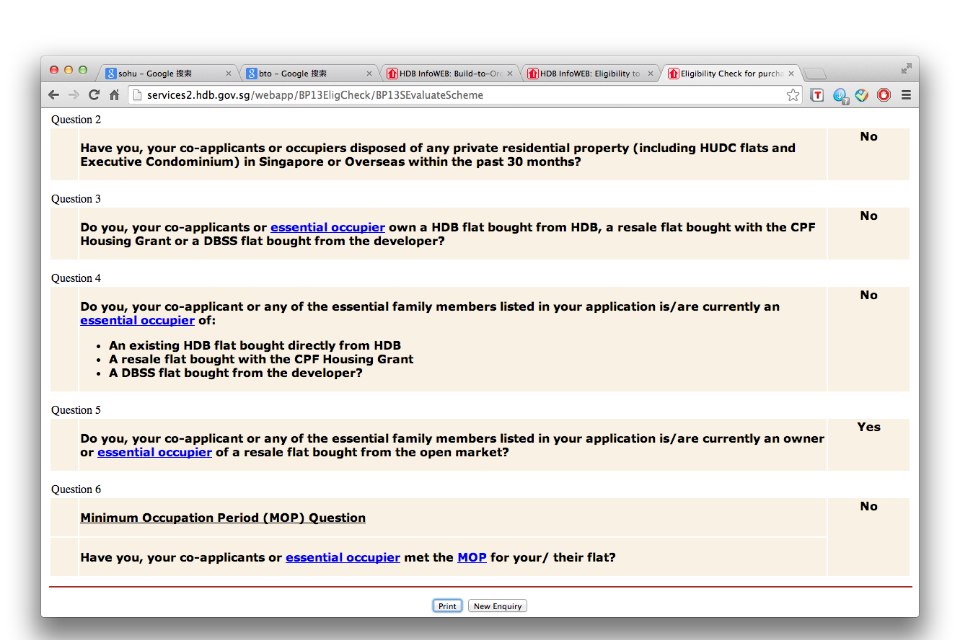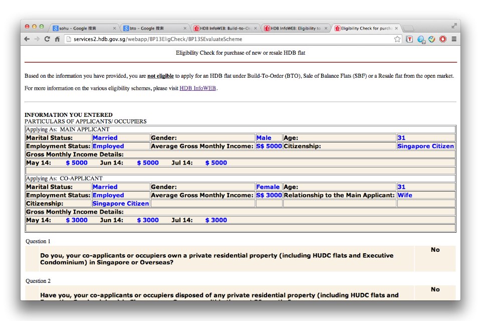 刚做了hdb的eligibility check"you are not eligible to apply for an hdb flat under BTO. " 原因应该是 currently an owner of a resale falt bought from open market and MOP is not meet..."you are not eligible to apply for an hdb flat under BTO. " 原因应该是 currently an owner of a resale falt bought from open market and MOP is not meet...