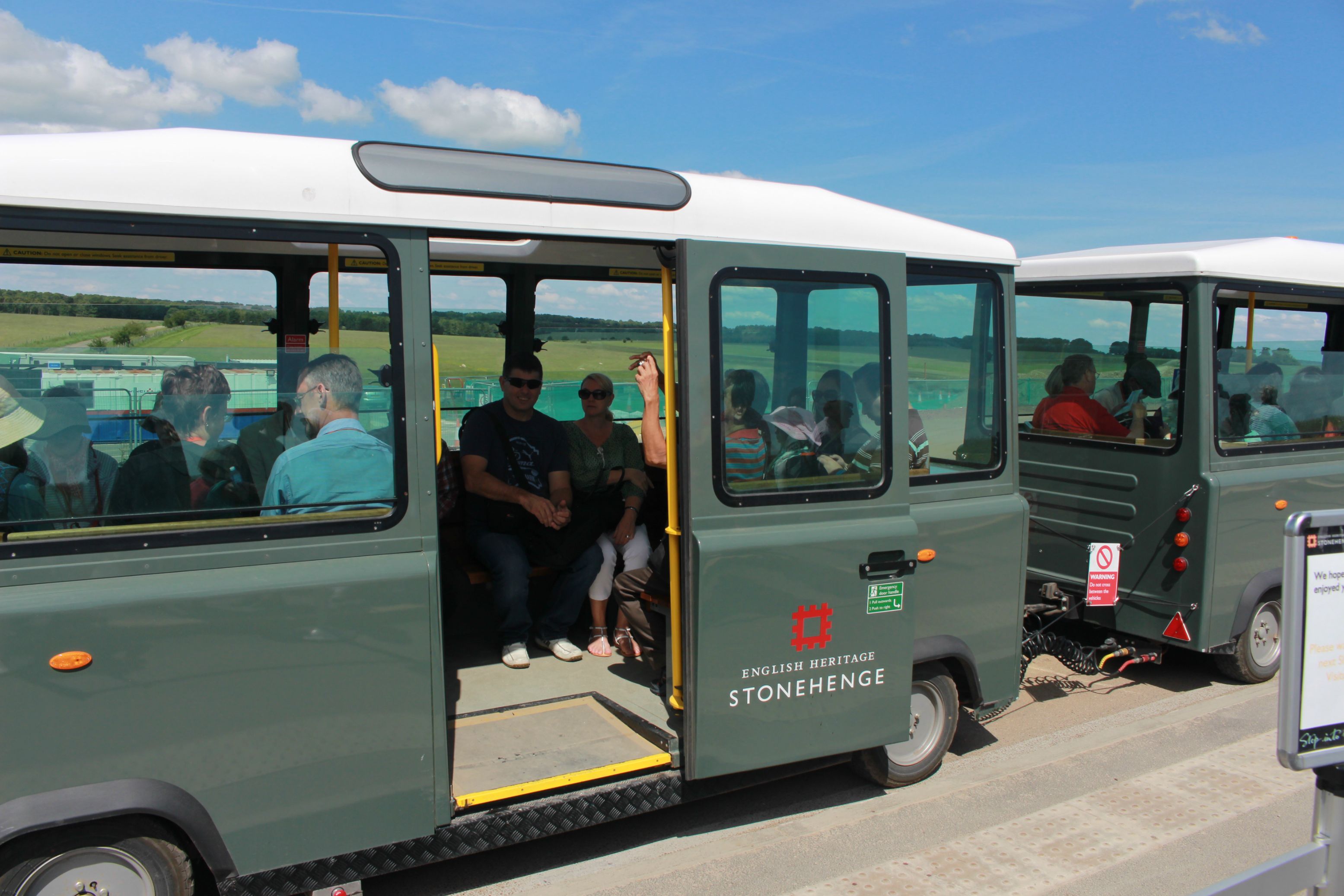 到了巨石阵游客中心,旅游大巴无法开进巨石阵景区,必须要乘坐景区内的接驳巴士,开15分钟之后进入巨石圈,也有老外顶着大太阳步行。