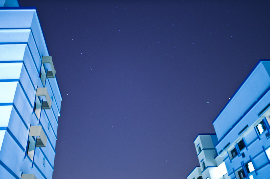 大B • • 64020 次浏览傍晚看天气不错,没什么云,无聊在家里试着拍拍星星,看效果如何。肉眼使劲看的话,大概最多能看到10颗,拍出来居然有几十到上百颗。但是光污染太严重,传说中的最大iso没用上,而且曝光15秒就已经看到星星的移动了。看来如果去实力达麦粒之等地还是有希望拍到不错的效果的。而且非全副也是有机会拍银河的。