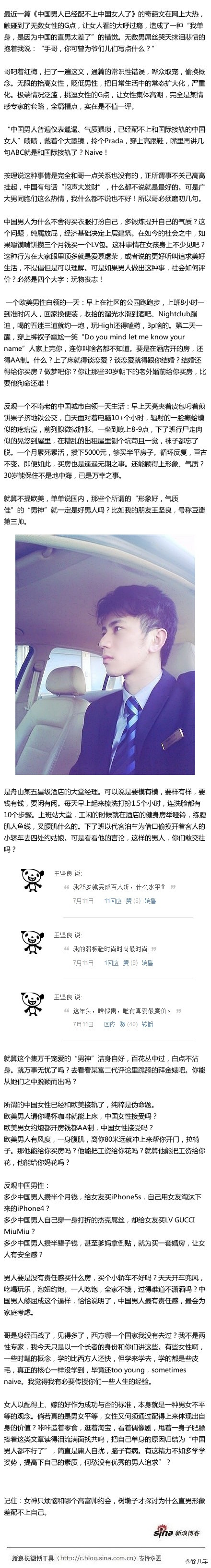 精武门 • • 63896 次浏览一篇《中国男人配不上中国女人?》的文章大力炮轰中国男人没形象,一时成了社交媒体的热点。文章称中国男人普遍仪表邋遢、气质猥琐,已经“配不上”和国际接轨的中国女人。