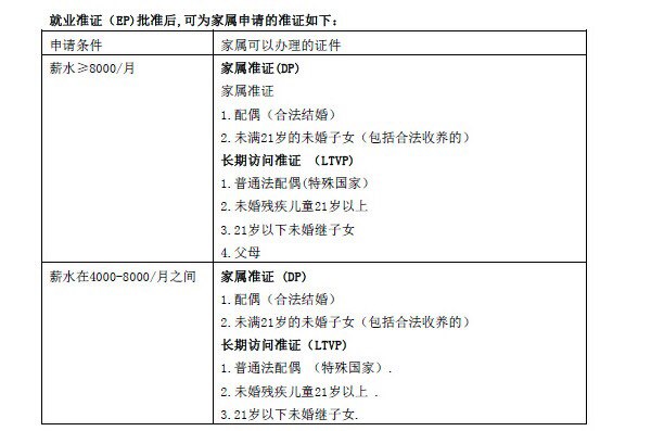 2.EP(就业准证)于2014年3月1日起对申请者学历并无特别要求,但年轻的申请者需要拥有优秀院校的毕业证书,且达到3300的最低薪资要求,年长的申请者则需要拥有更高的薪水以及相应的工作经验和工作质量。