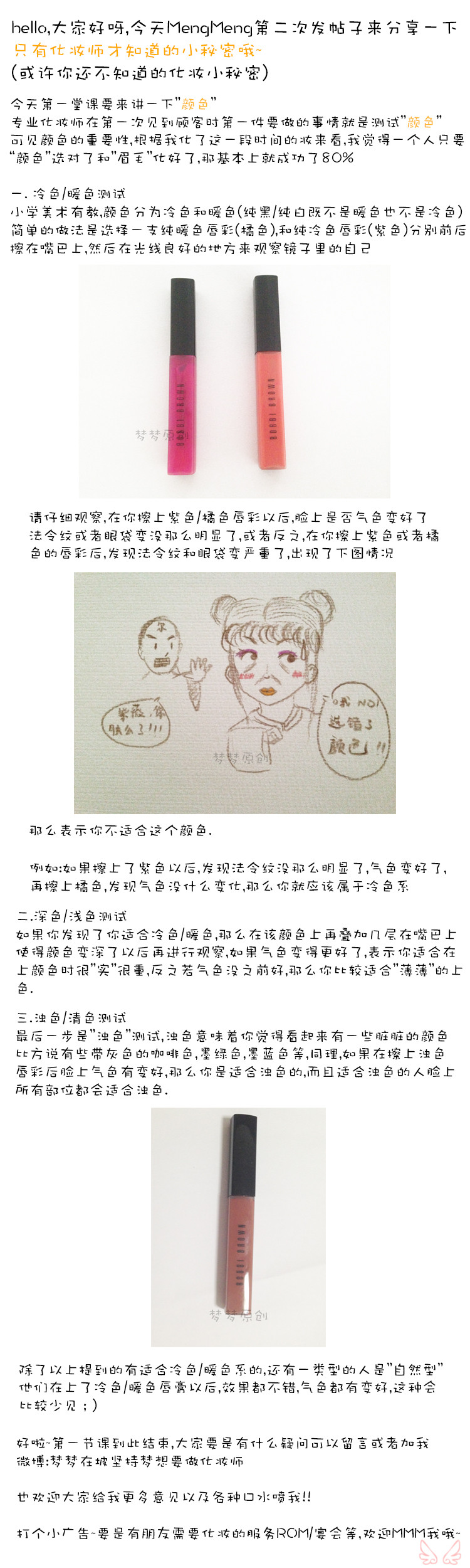 亲你在版上分享化妆知识这个是欢迎的,但是你给自己打广告是不允许的,就酱简单