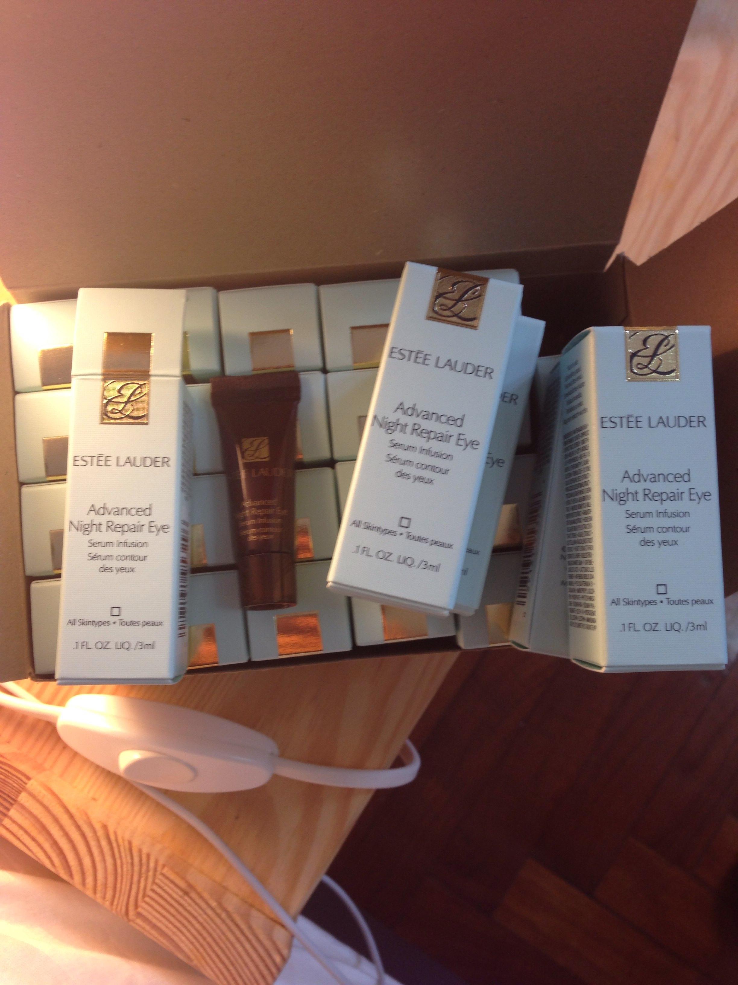 1.EL1.小棕瓶眼精华3ml*4=12ml,中样套,32出,有七套批号BB2,还不错哦。这个是中样有盒子的,差不多12ml一个full size了,四个中样的话。正装我卖75,机场昨天看见90的,自用很棒!有7套