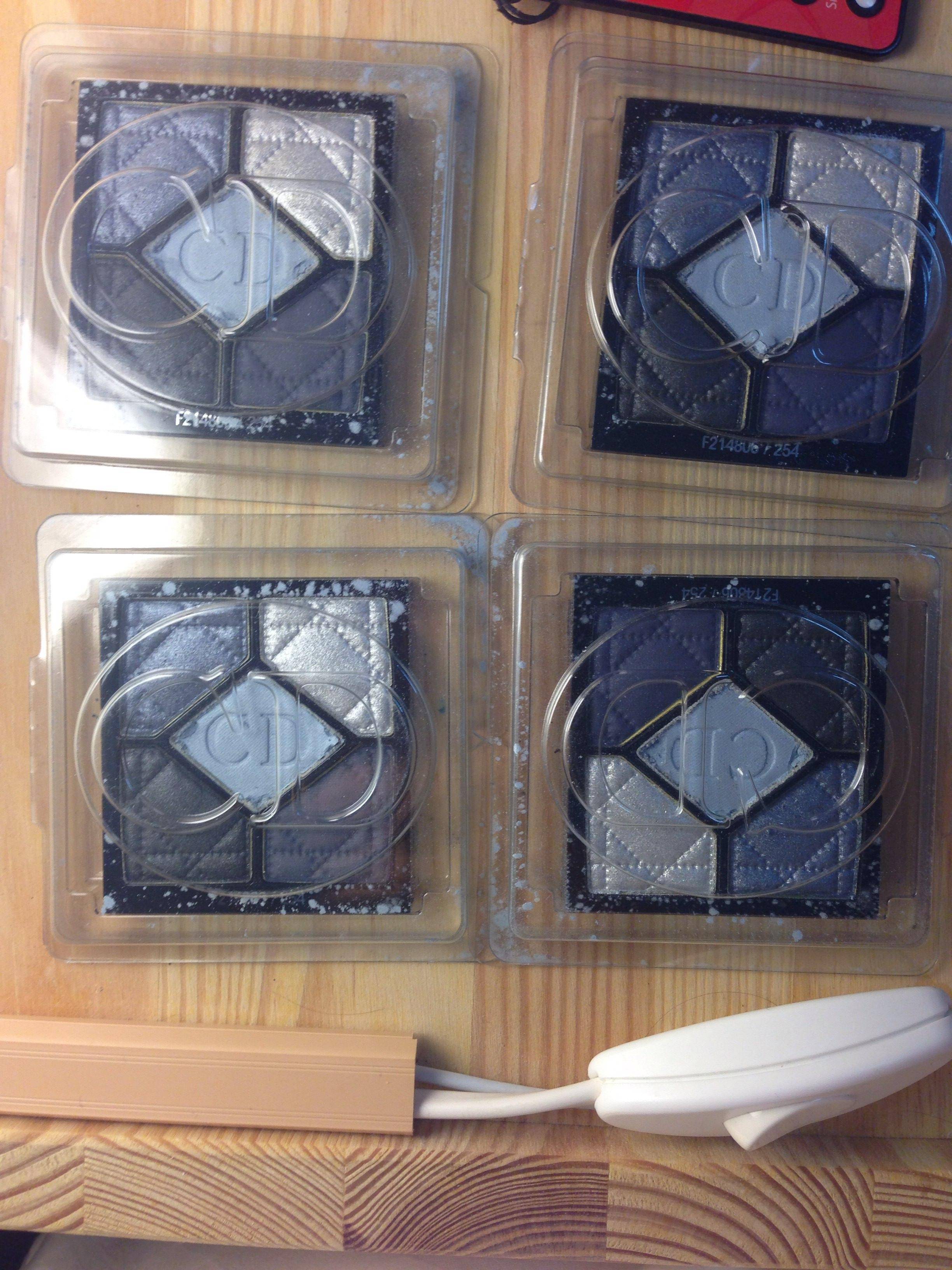 25.宇宙无敌白菜的Dior蓝色眼影,14出,有四个先说下这个原本至少卖20,我在运货路上不小心放在箱底,中间那块打底色边缘掉屑了,所以特价处理,不影响使用,表面不平而已,没有碎。海报色,专柜82。随便卖而已,tester的refill,色号254