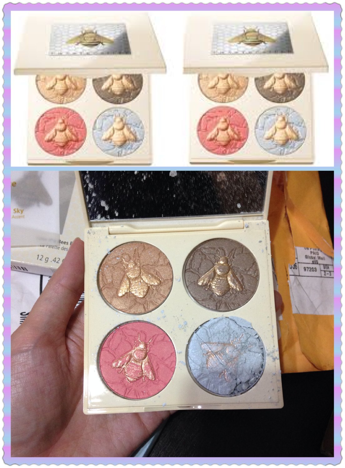 我的这一块也是碎了。。。而且也是蓝色碎了。。。我用酒精压了一下,还行,隐隐约约还能看见蜜蜂的轮廓而且也是蓝色碎了。。。我用酒精压了一下,还行,隐隐约约还能看见蜜蜂的轮廓
