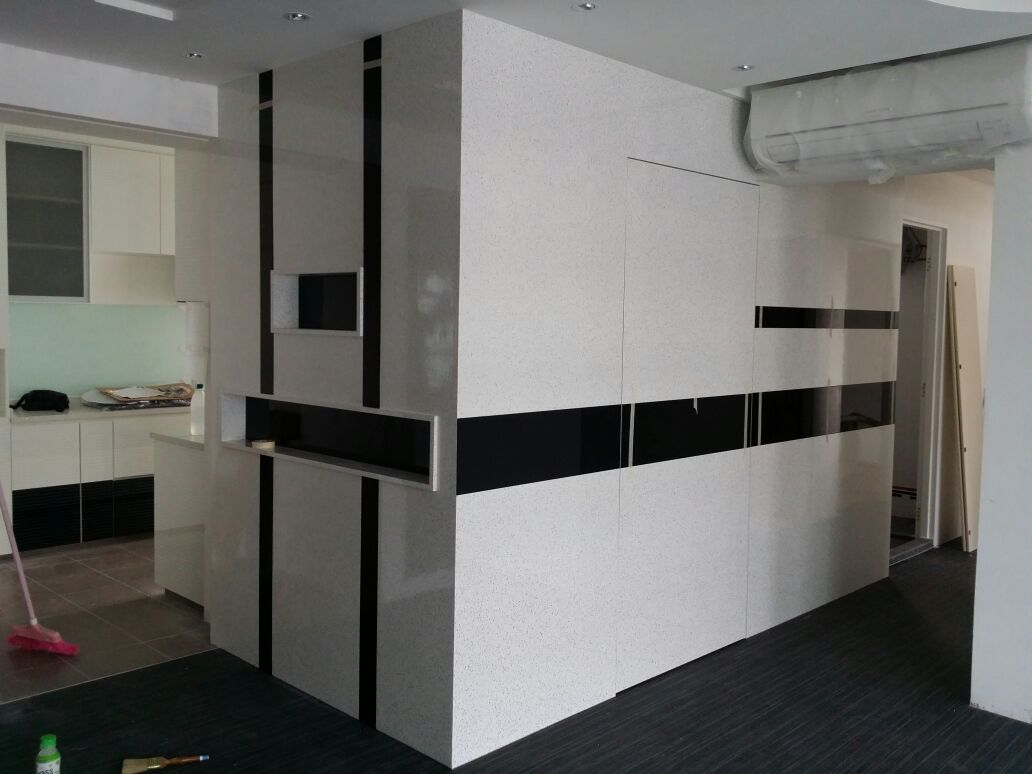 算是救我于危难吧,机员巧合认识了,后来就带我看他们做过的厨,觉得手工不错,价格合理就选了他,为了省钱,家里木工的东西全部是我自己设计,所以改了又改,阿滨每次都是耐心的给我改来改去,很感激他!俺新家做了厨房厨,鞋厨,电视背景墙,电视柜,书柜,厨房到储藏室两面墙包起来,主人房推拉门衣柜,门口的风水隔断,全部20千不到(所有厨里面都是用的木纹,不是白色pvc),做出来很美,主要是价格真心合理啊。