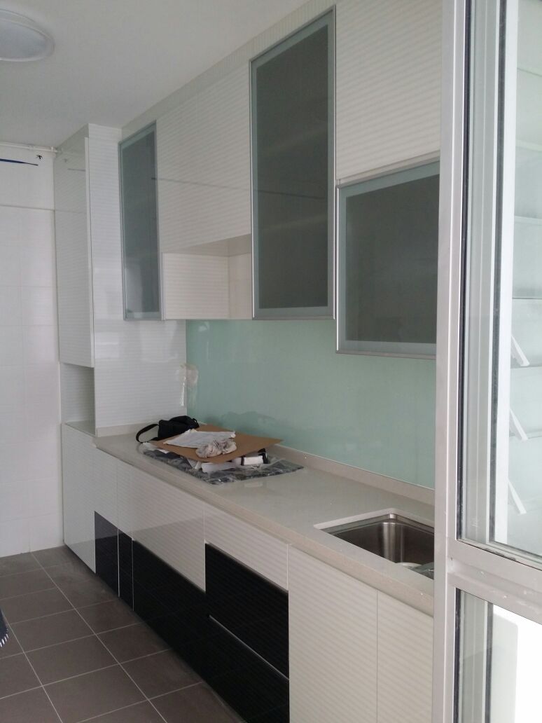 厨房橱,中间用的白色喷漆玻璃,比较好打理油烟