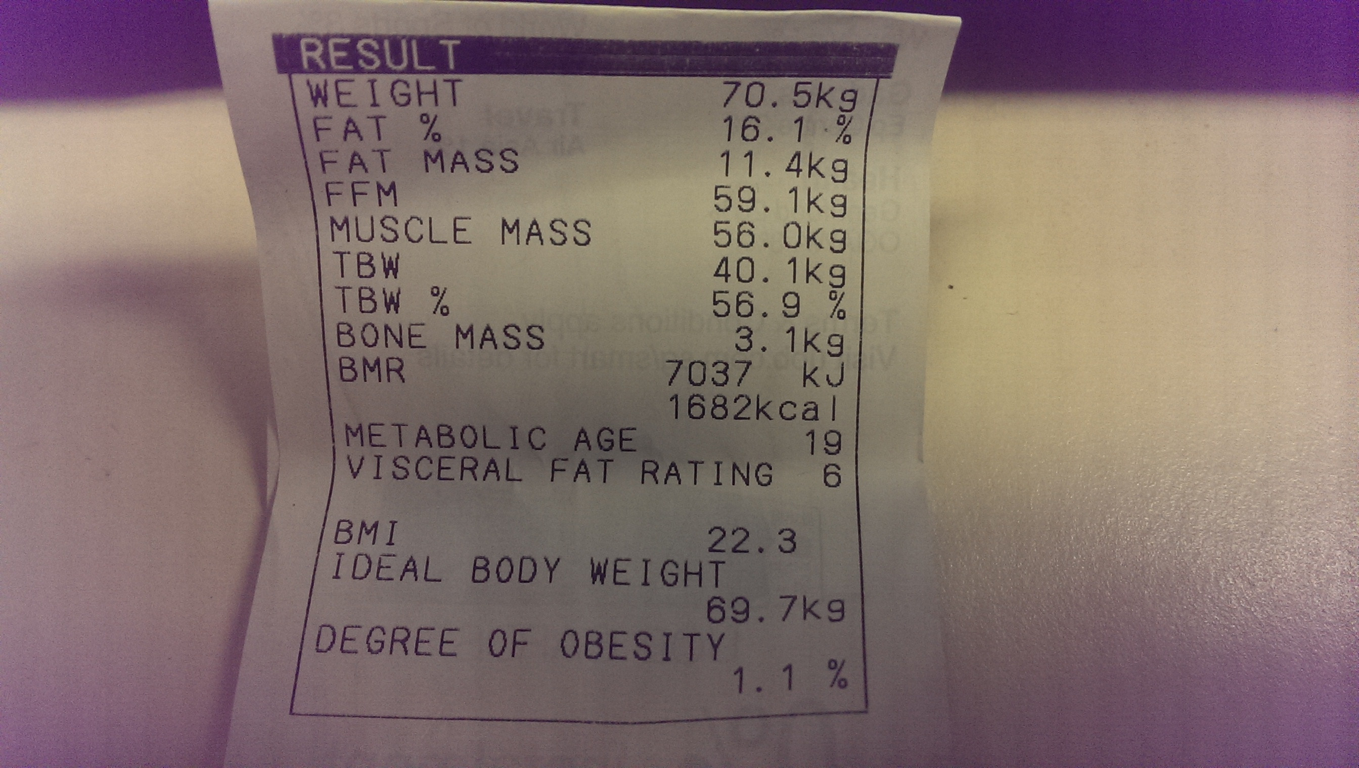 fitness first的机器小伙已经年过26了, 没想到metabolic age还是19。依然活力十足啊。哈哈小伙已经年过26了, 没想到metabolic age还是19。依然活力十足啊。哈哈