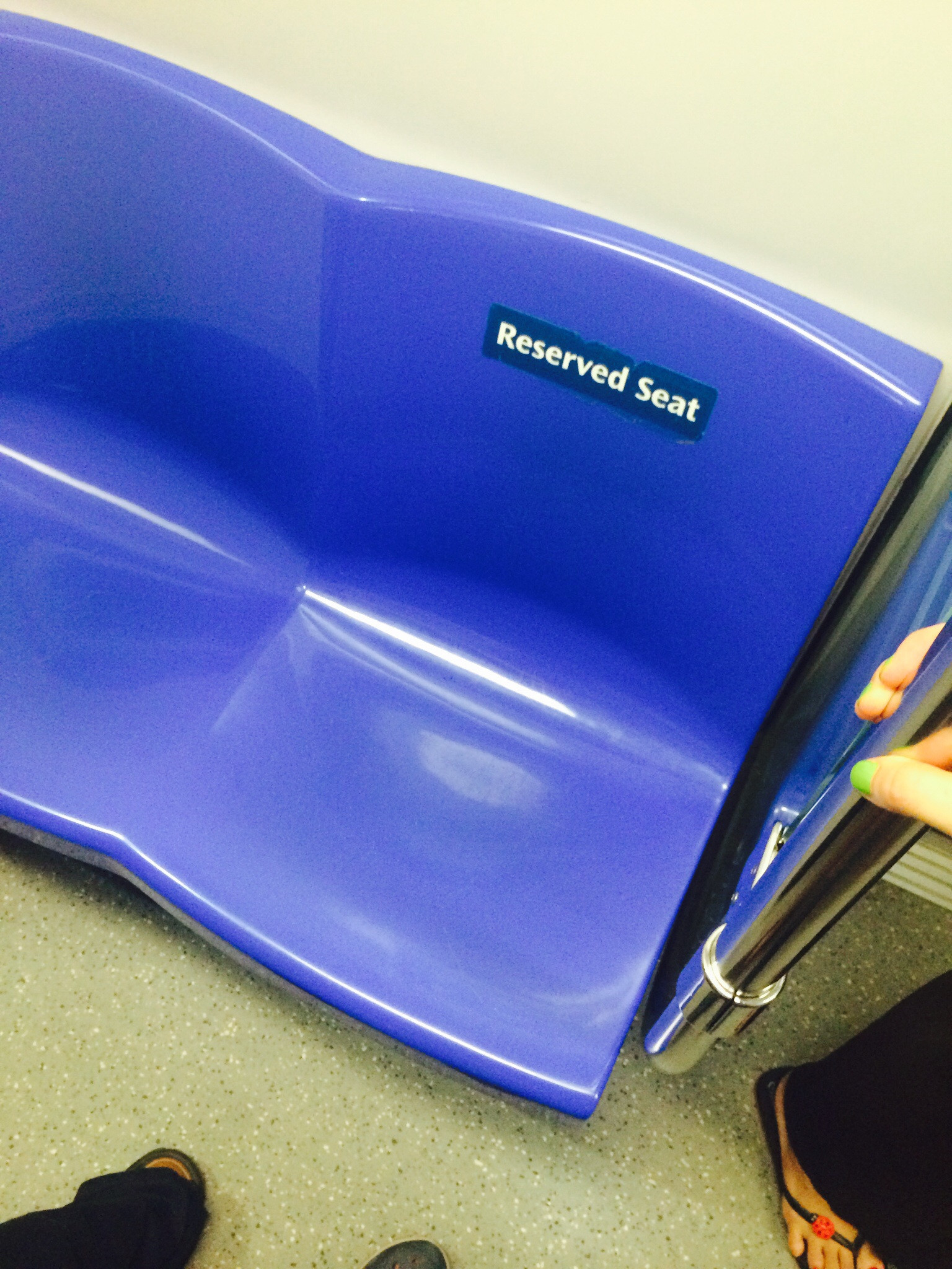 2)一次被一个男的让座了,莫名其妙,不过挺开心的,后来发现估计是把楼主当成孕妇了 3)以前都不坐reserve的位子,后来就只要没人坐,周围也没有老弱病残就坐了,有一次坐了,看见老人就不坐了,换个车厢又看到一个reserve seat 就又坐下来了。3)有一次坐在reserve seat上想心事,没看到老人,一回头看见一个老人就站在面前,大汗,赶紧让座。 觉得尽力不要坐reserve seat 比较好,不如一直观察周围挺累的。