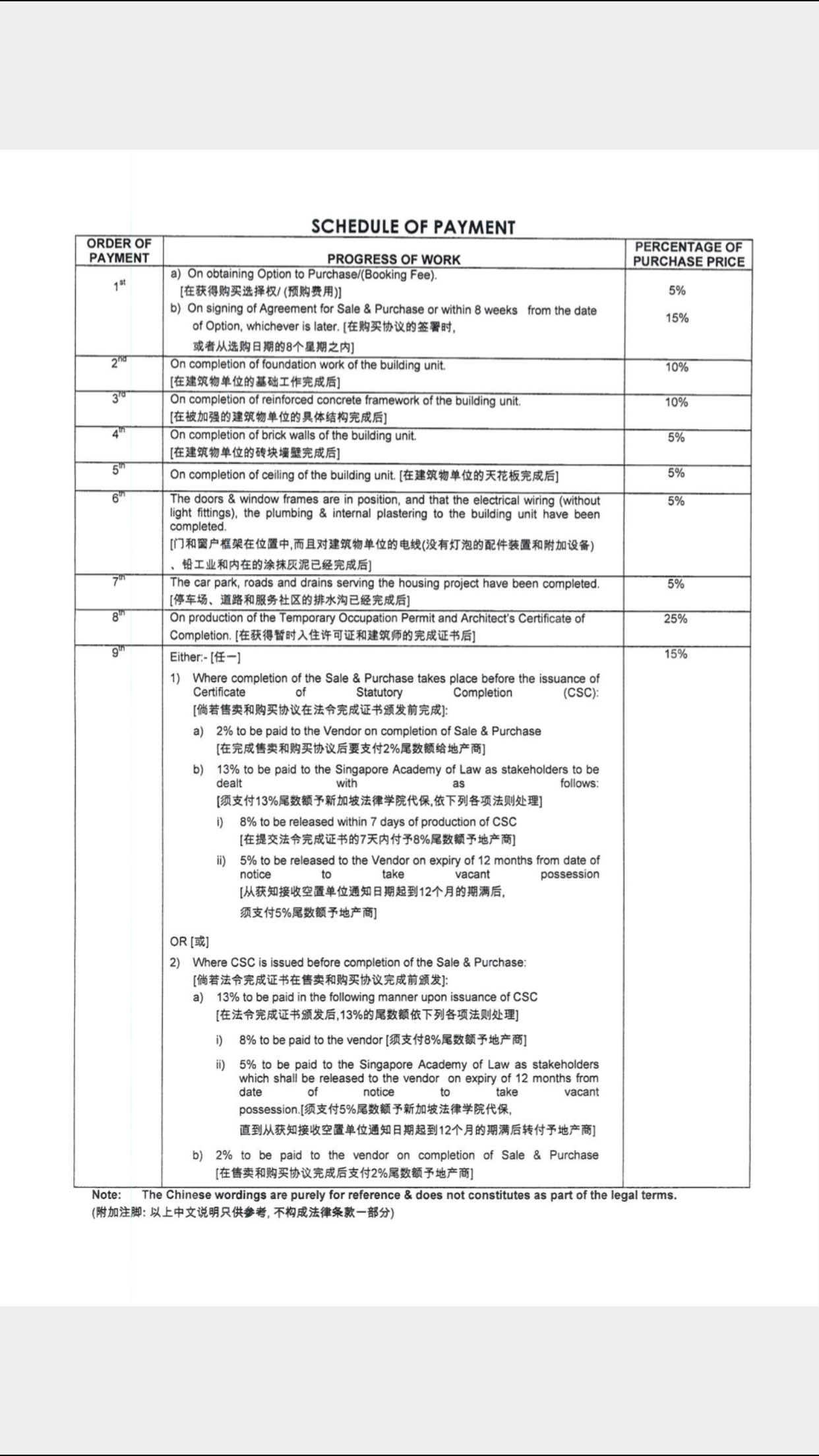 如果实在是搞不定贷款,那么只能考虑在付款方式上相办法。这时候就要考虑defer payment scheme了。了解defer payment acheme前 得先知道progressive payment scheme 又叫normal payment scheme