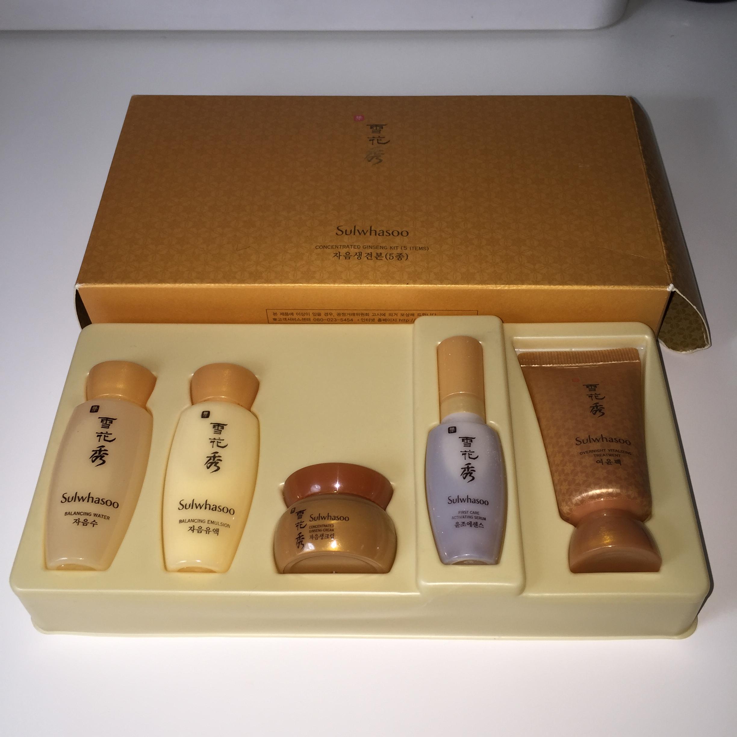 水乳各15ml,精华8ml,人参面霜5ml,睡眠面膜15ml,全部都是明星产品