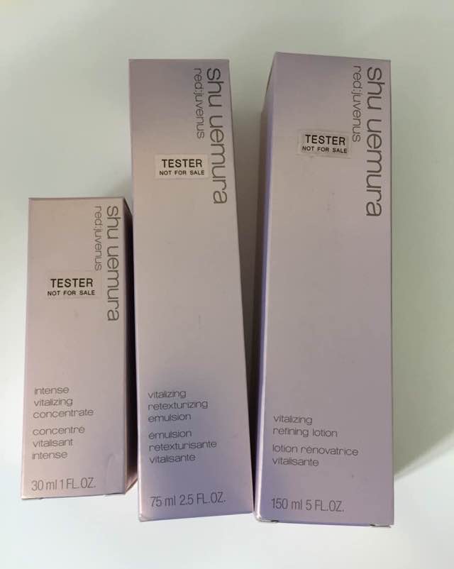 49.植村秀三件套,红萃系列,水,乳液,精华,150一套出,有两套水,乳液,精华,日期都是2012年的所以特价了,150其实只不过是精华的专柜价钱而已,包装正装包装,有tester粘纸而已。